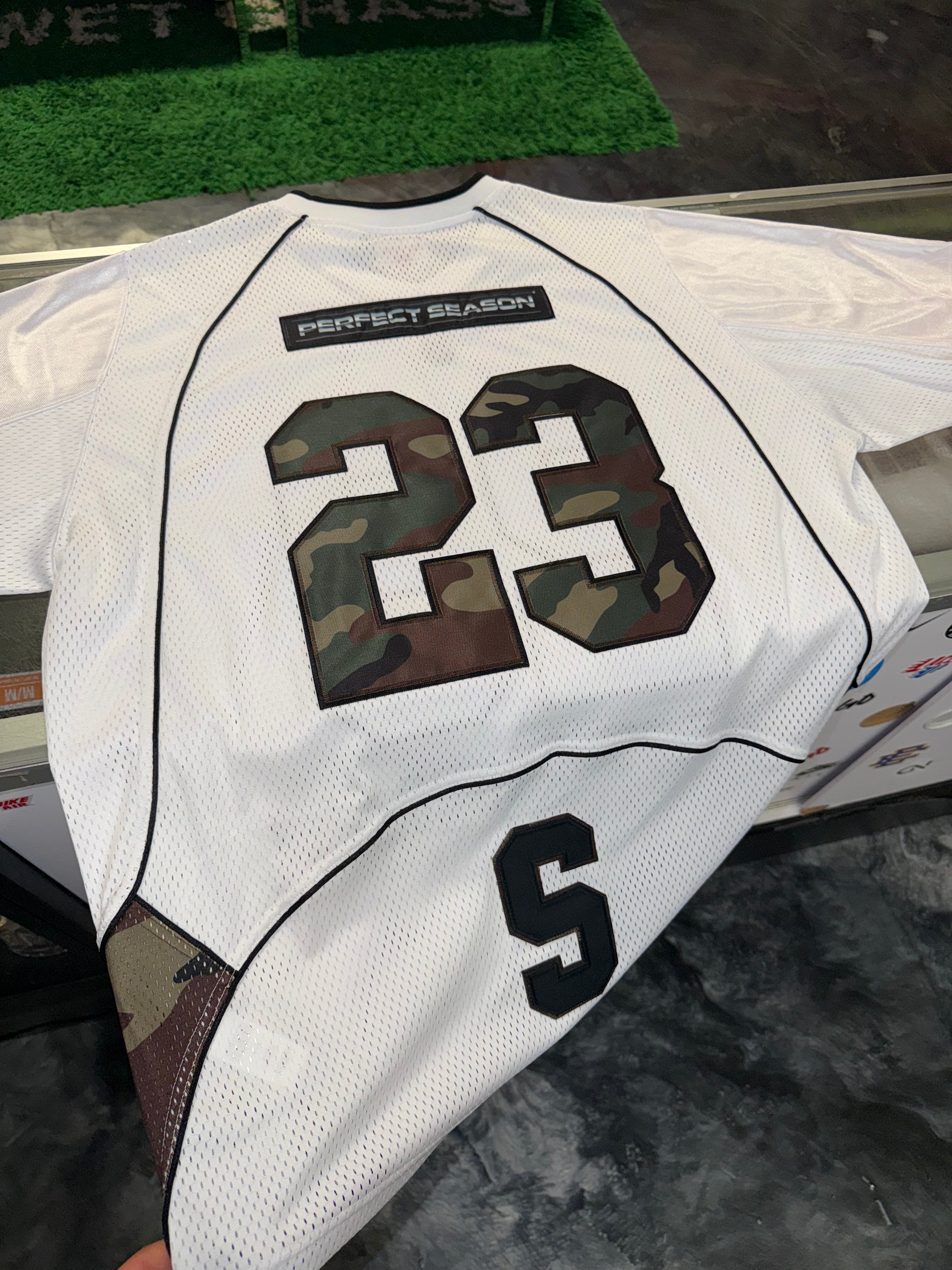 Home Size L Supreme Perfect Season Football Jersey “White/Camo” Worn 1x