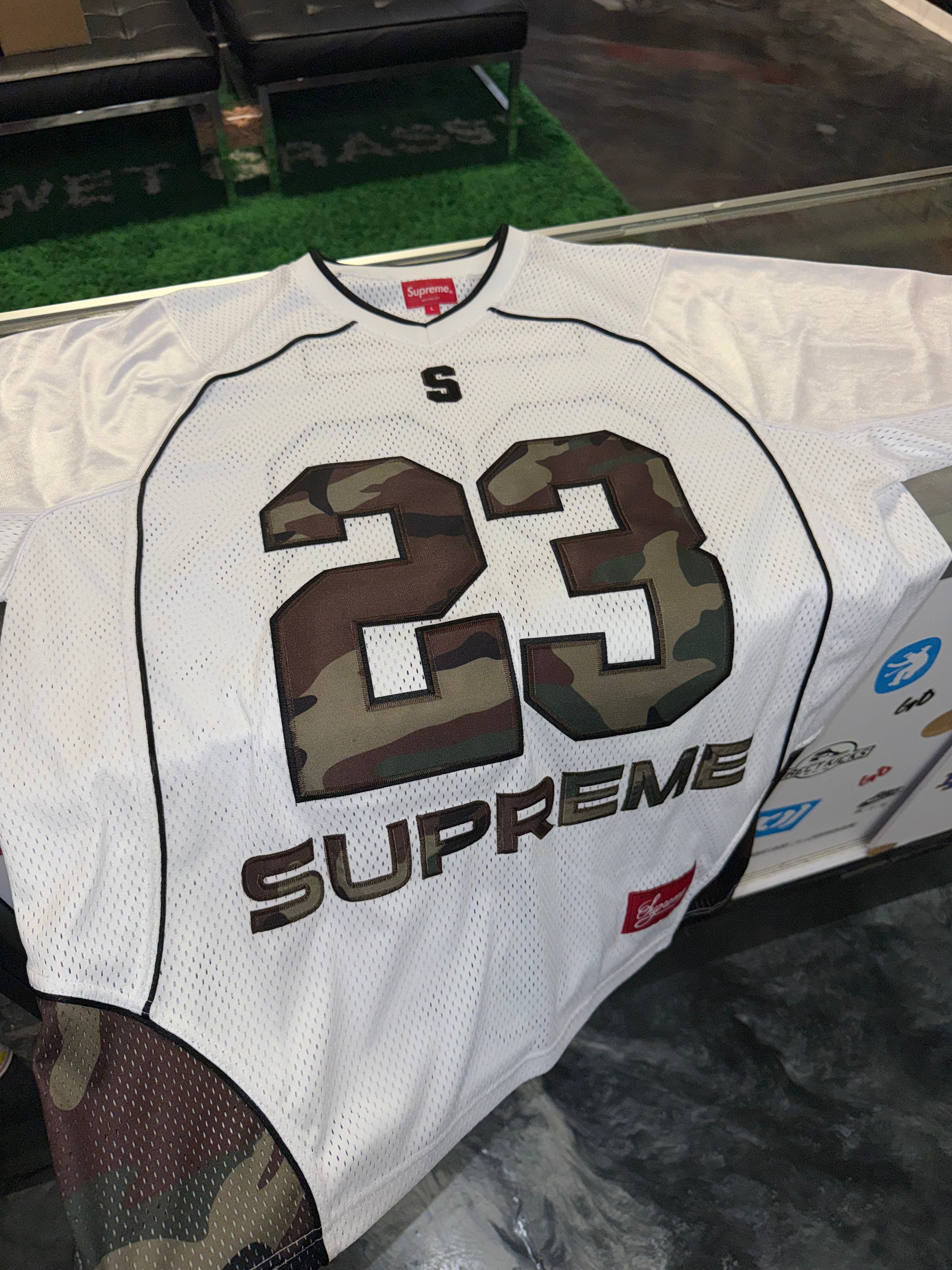Size L Supreme Perfect Season Football Jersey “White/Camo” Worn 1x