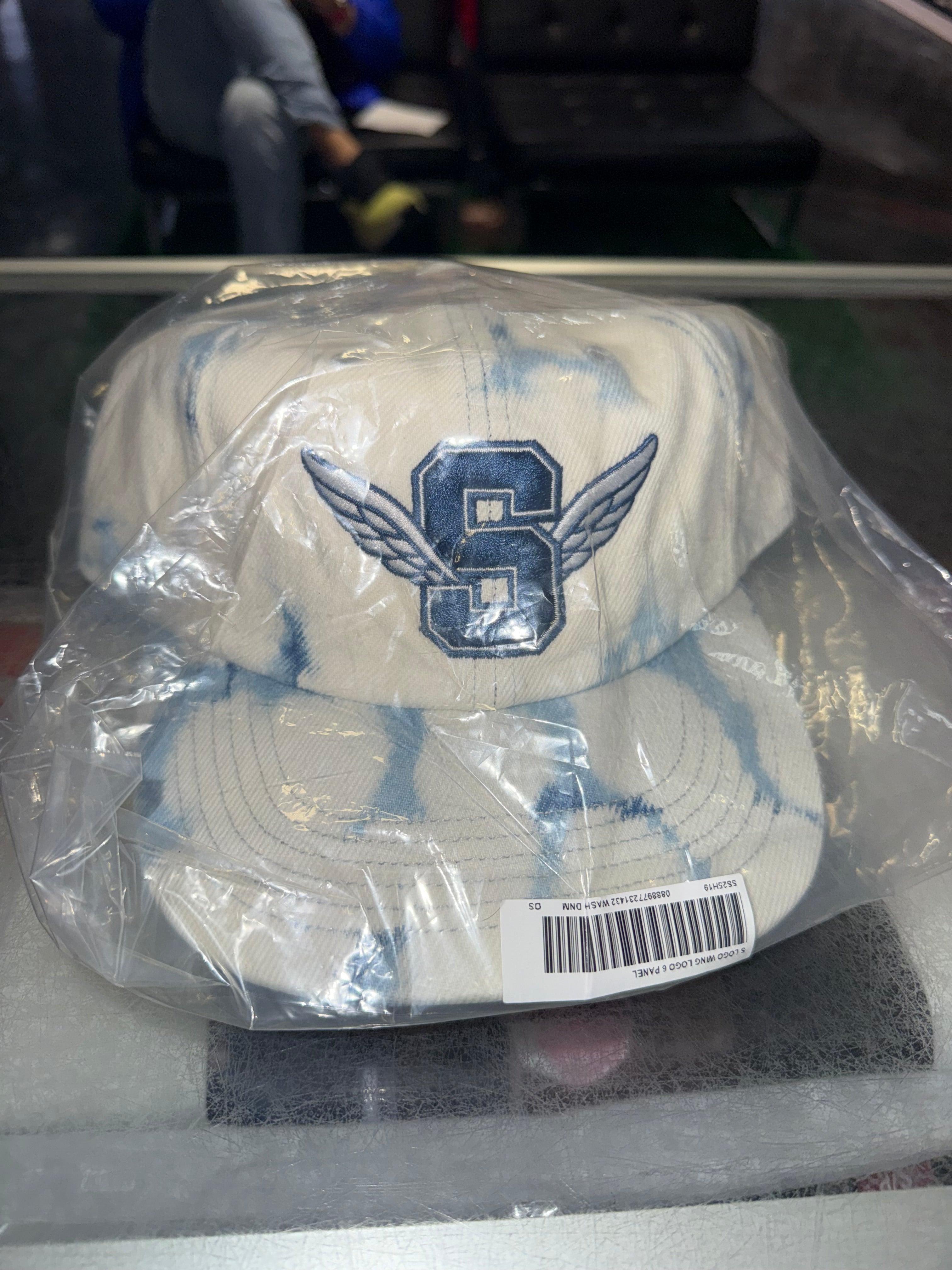 Home Size OS Supreme S Wing Logo Hat “Washed Denim” Brand New