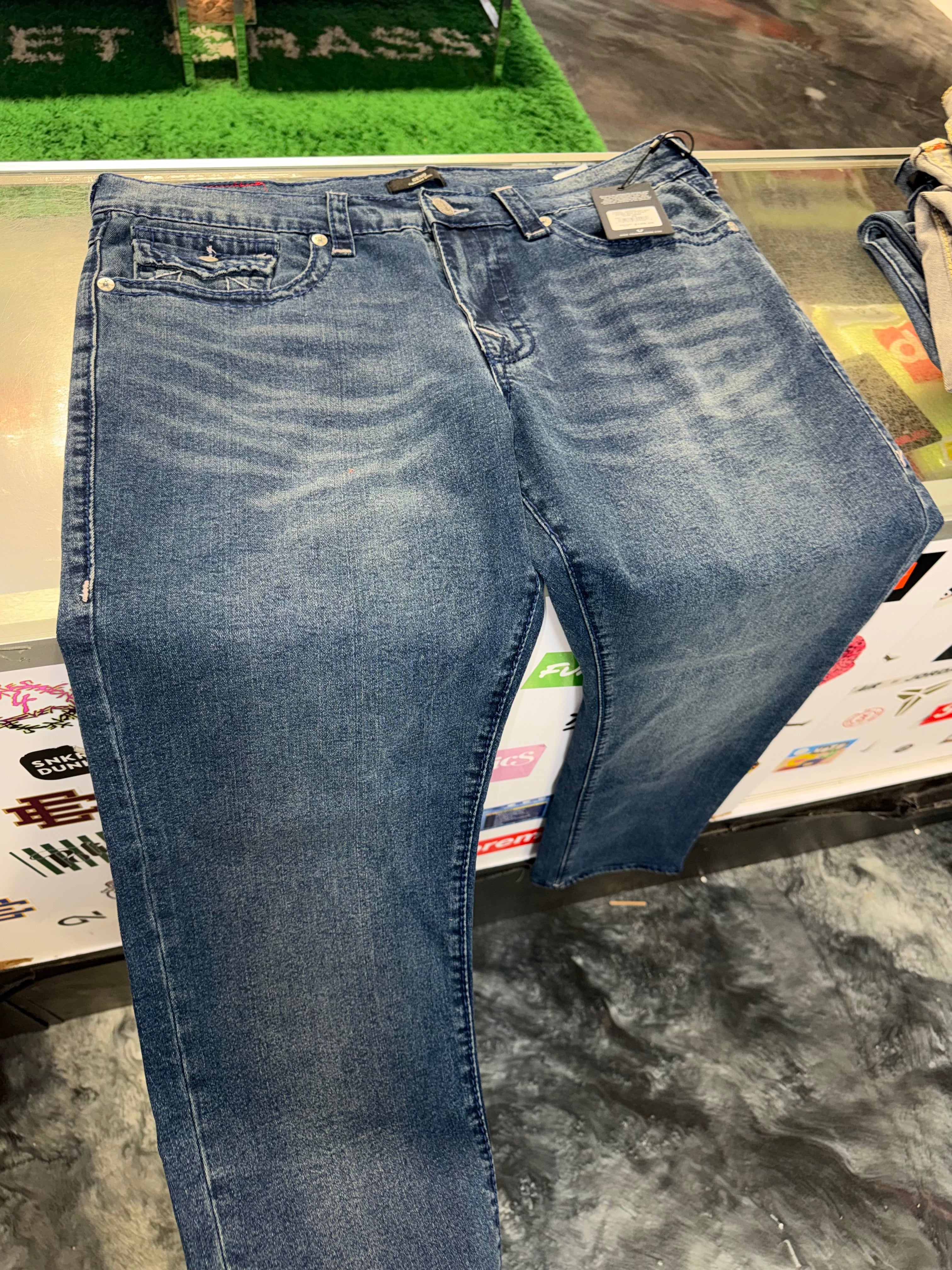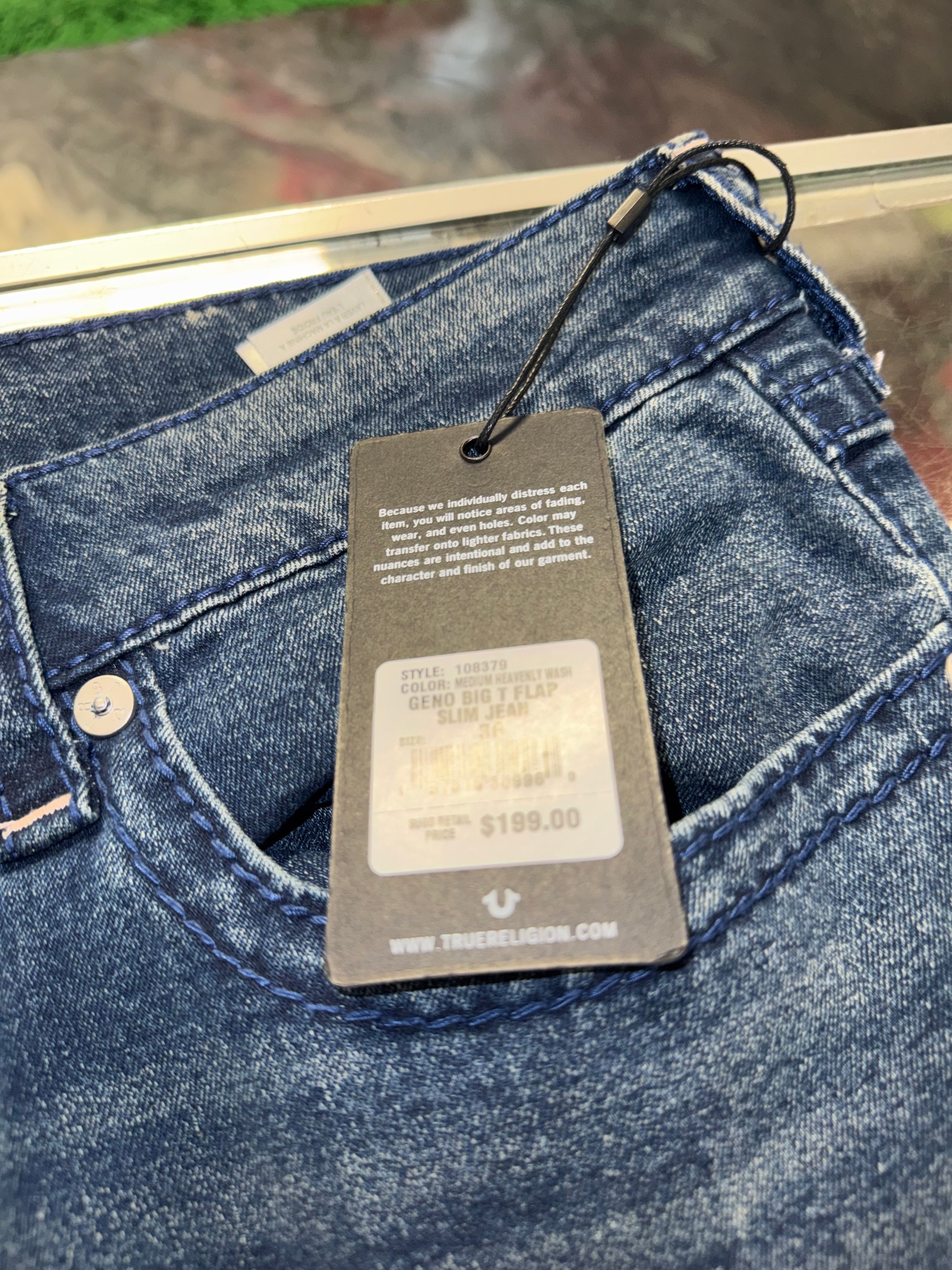 Size 36x36 True Religion Geno Relaxed Jeans “White Stitch” Brand New