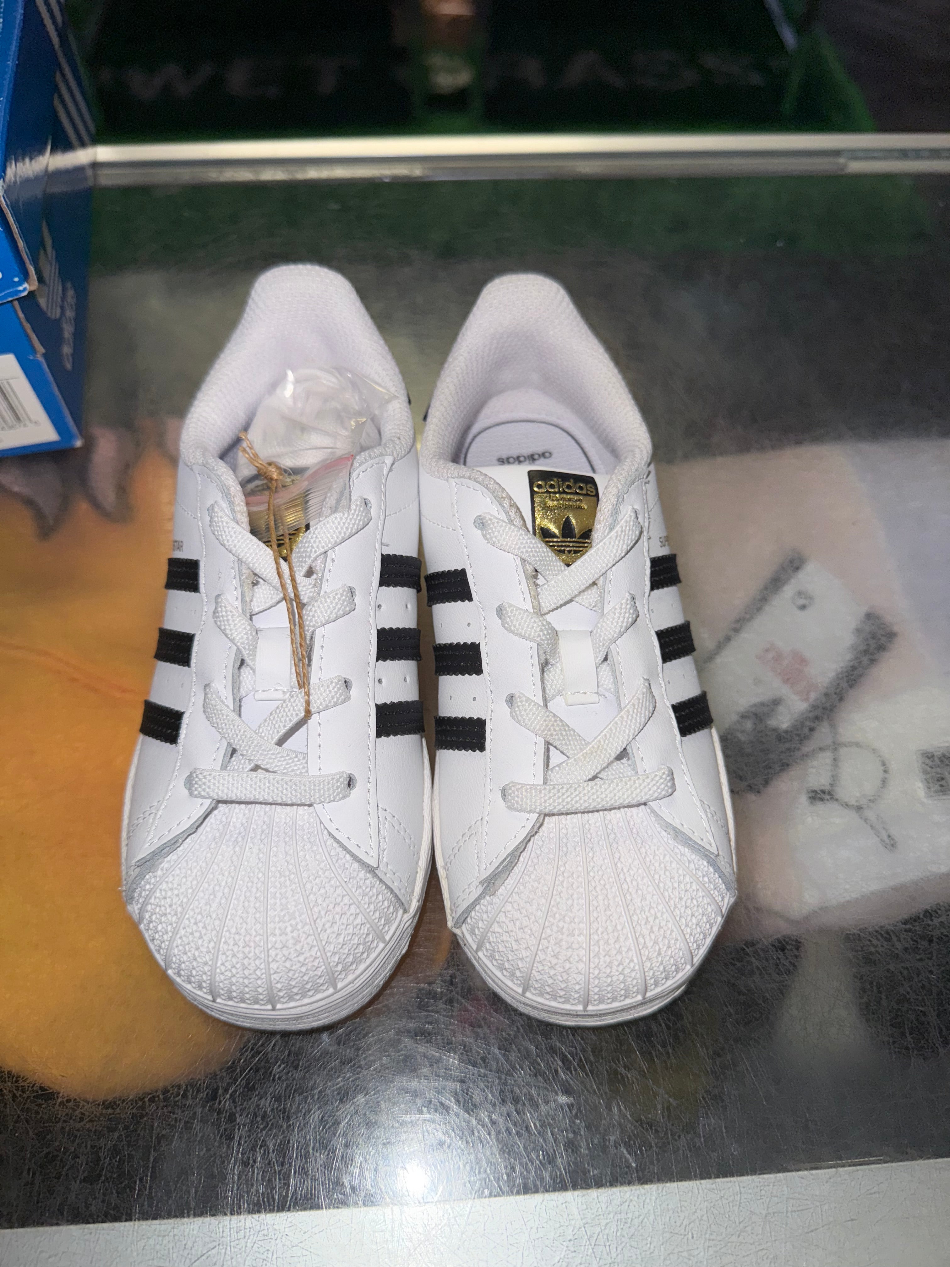 Home Size 10K Adidas Superstar "Black White" (TD) Brand New