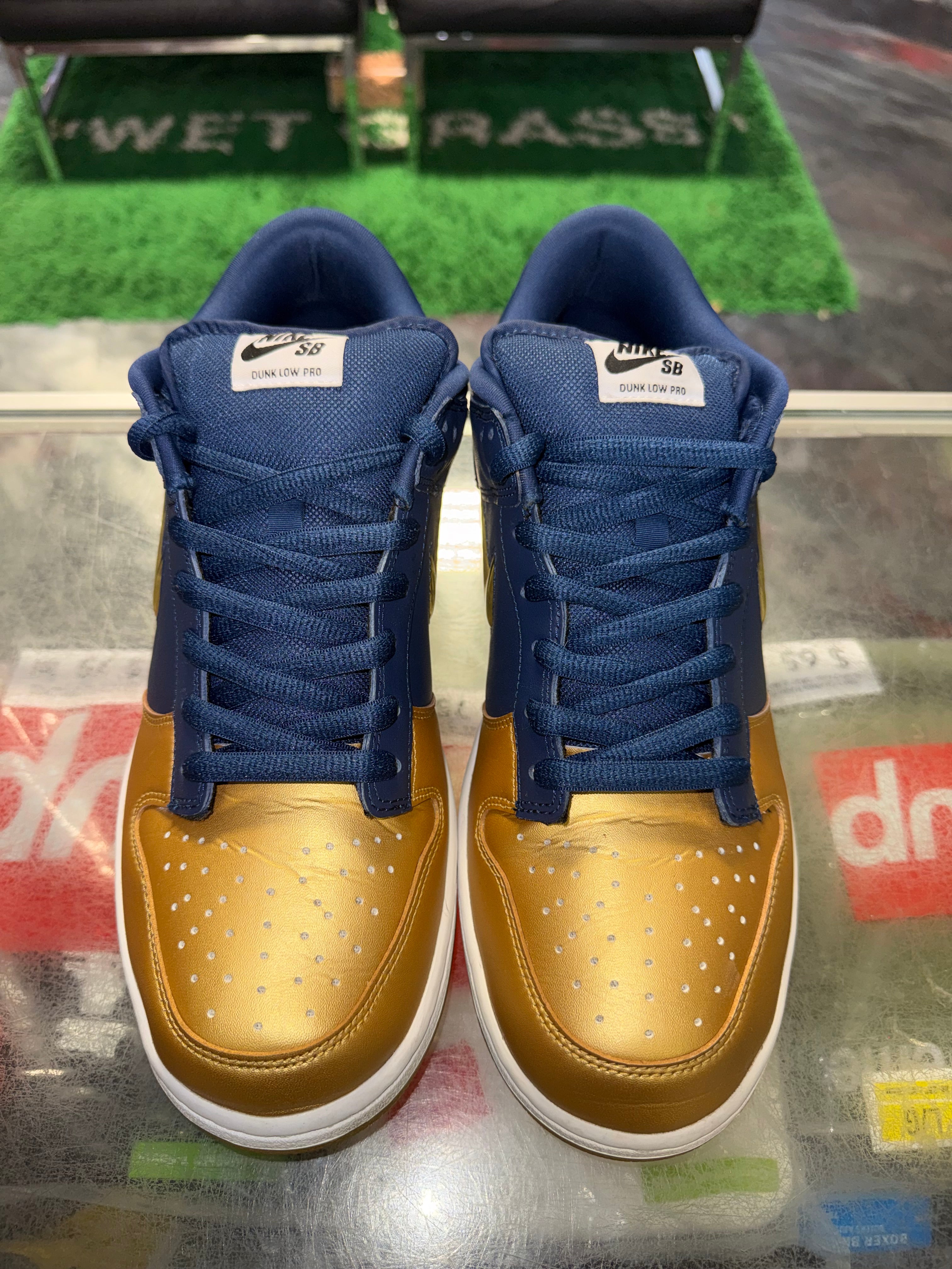 Size 12 Dunk Low SB Supreme "Jewel Swoosh Gold"