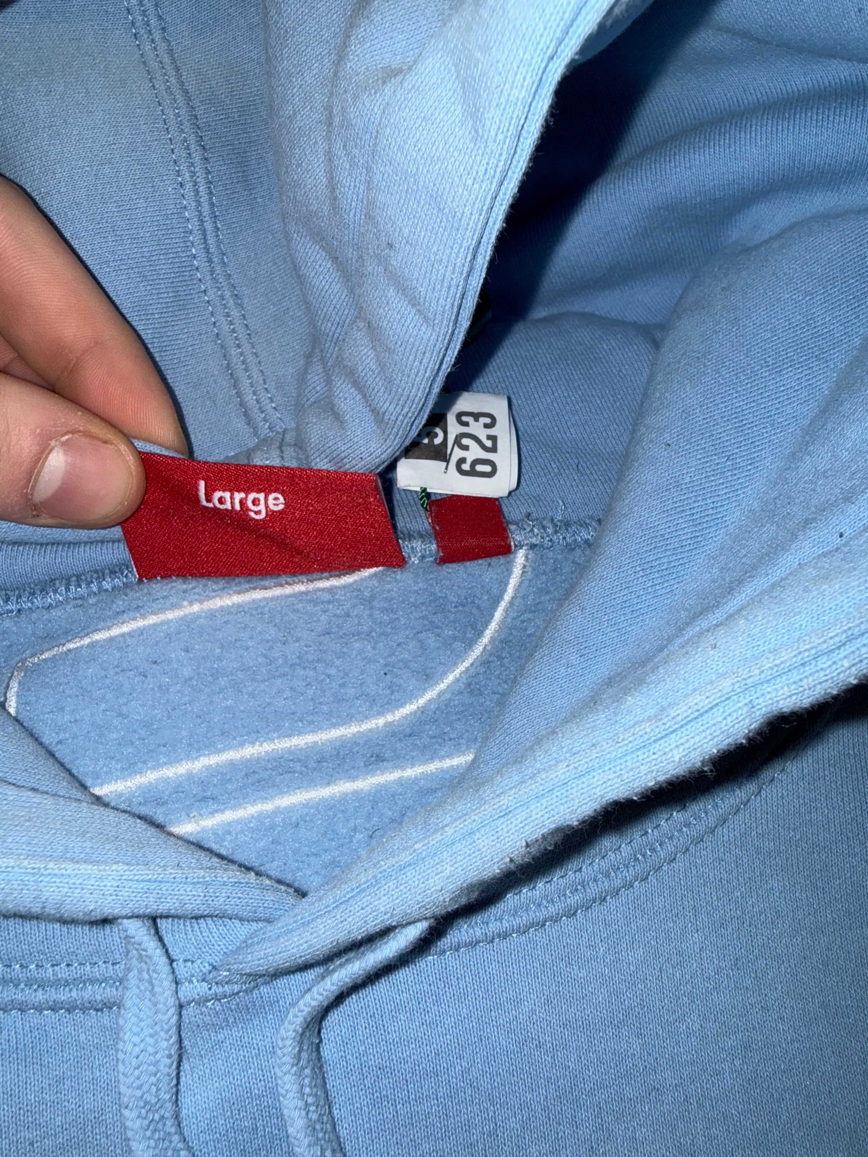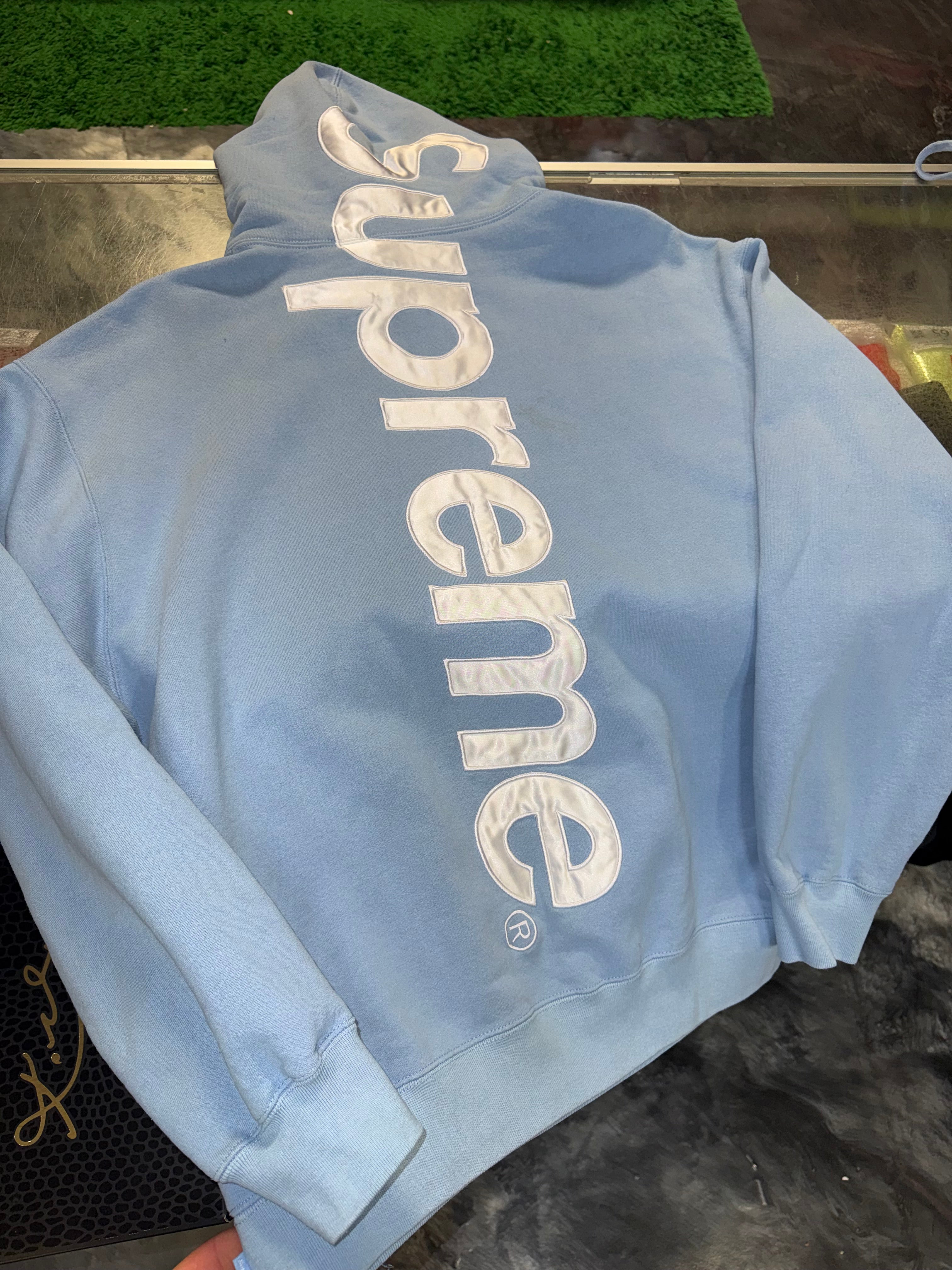 Size L Supreme Satin Applique Hoodie “Light Blue”