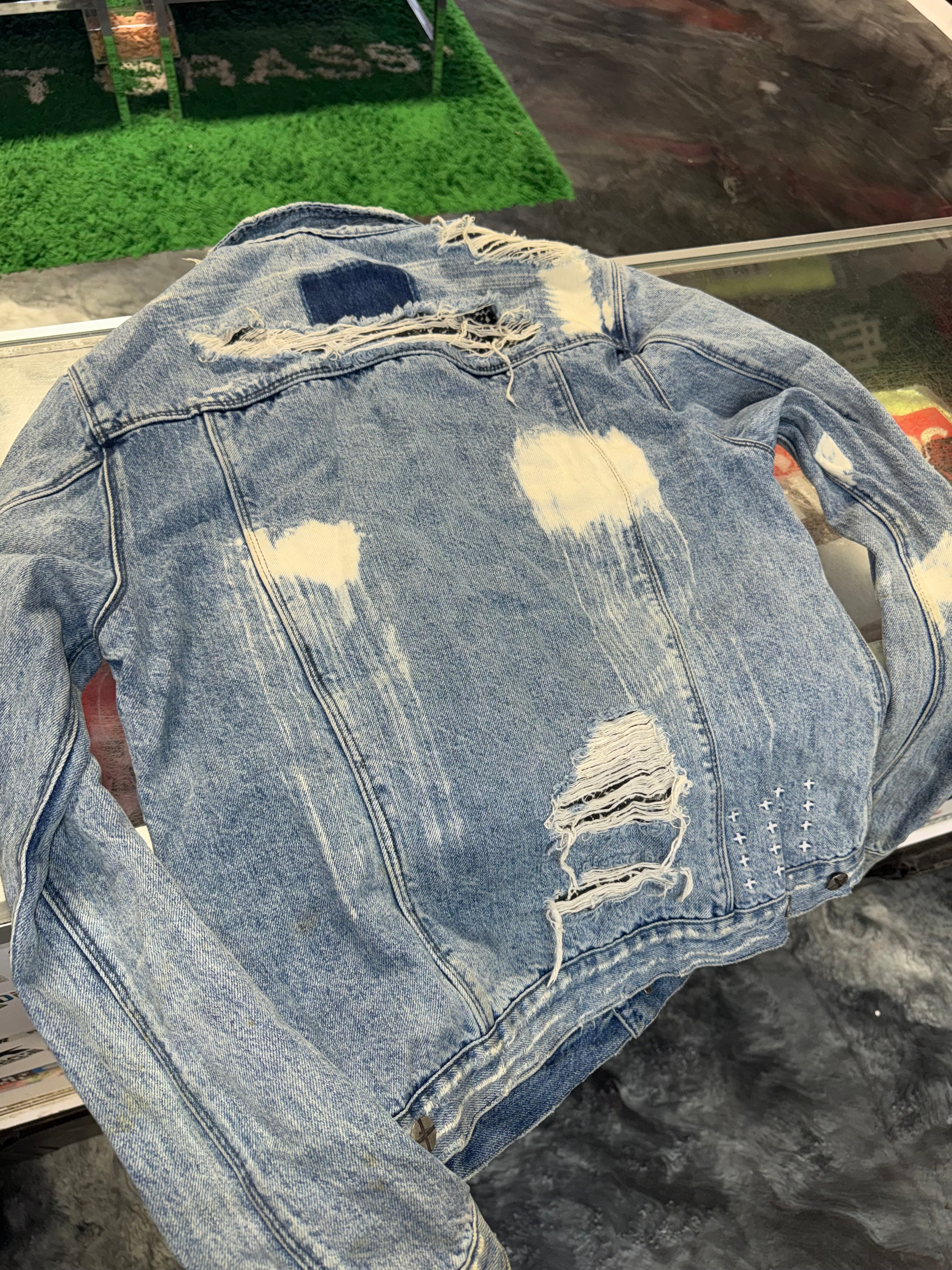 Size M Ksubi Distressed Denim Jacket “Bleached Light Denim”