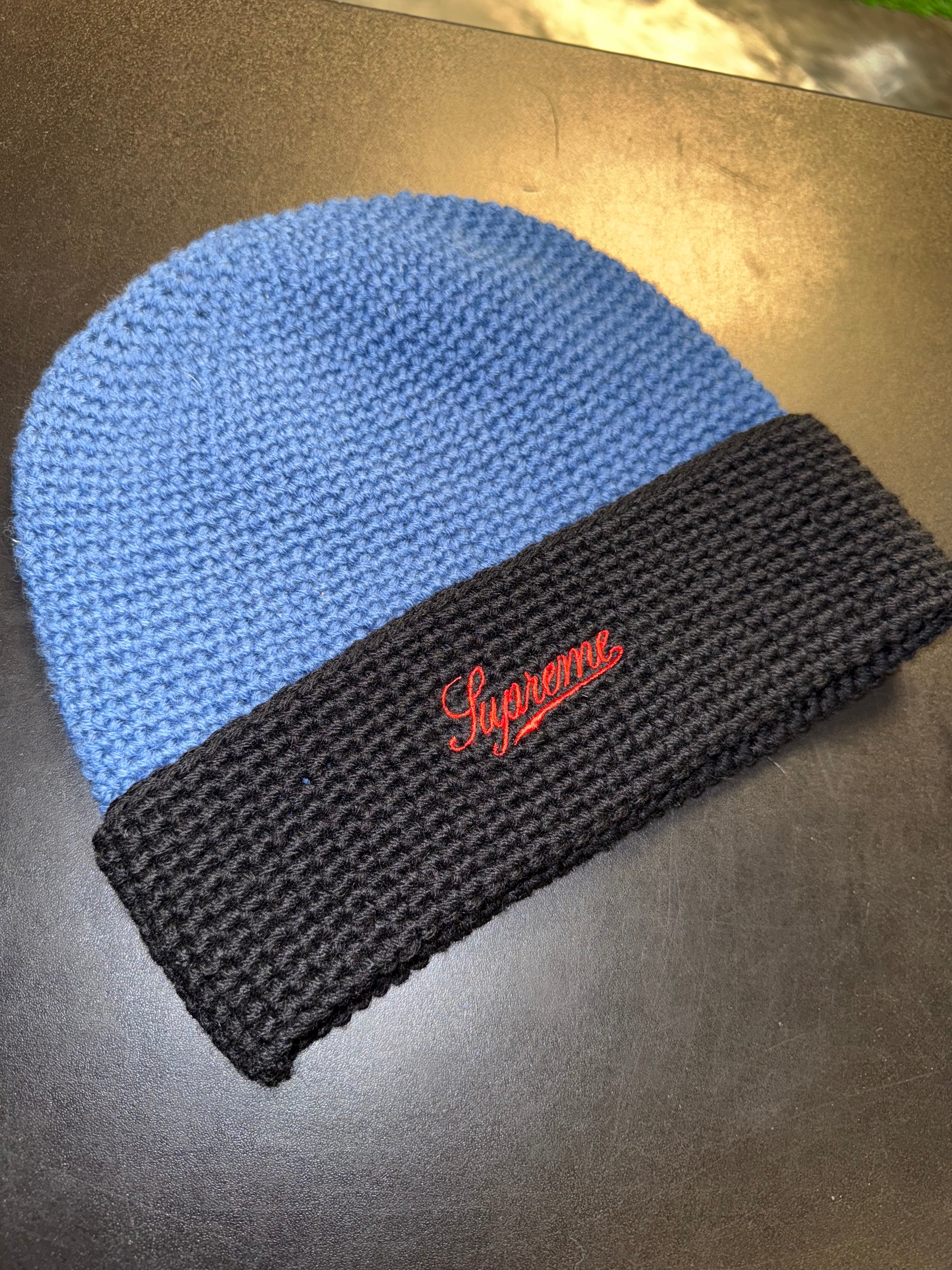Size OS Supreme Two Tone Twill Beanie “Blue/Black”
